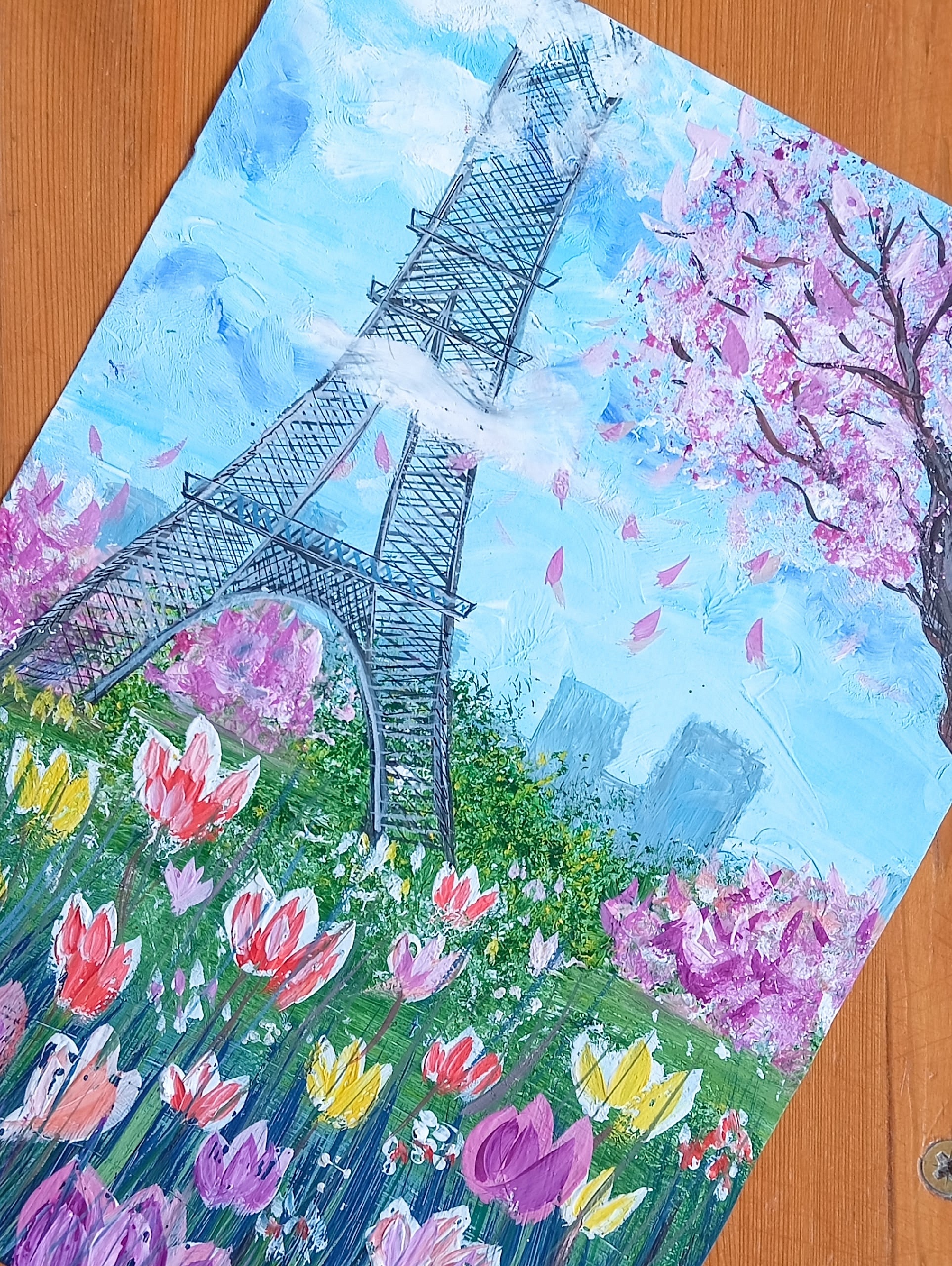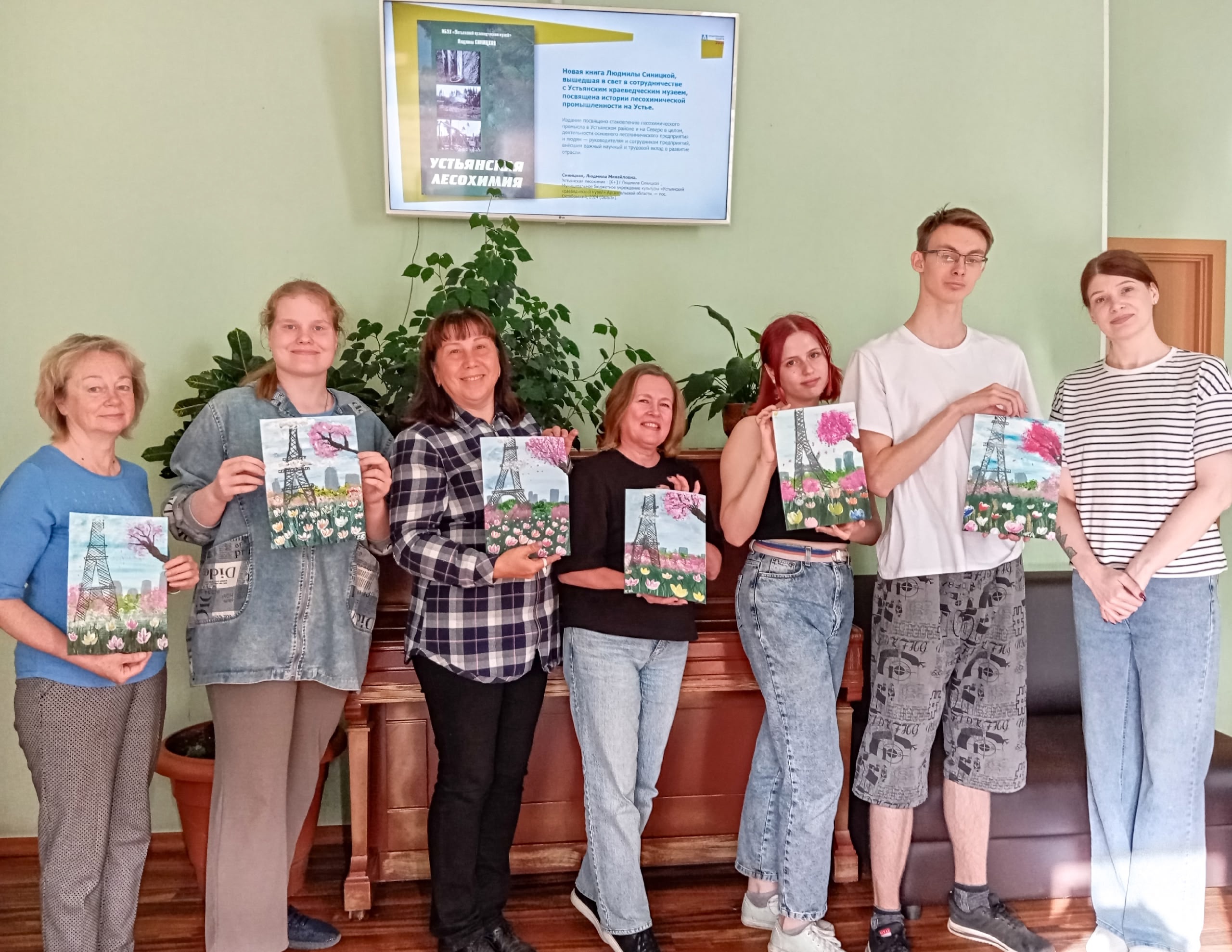 Темой должен был стать «Космический дельфин», но вдохновляющая летняя погода внесла свои коррективы. Вместо фантастических глубин участники отправились в тёплый и цветущий Париж. На картинах ожил пейзаж с Эйфелевой башней, ветвями цветущего дерева и полем ярких цветов. Каждый холст получился по-своему уникальным — полным света, цвета и летнего настроения.